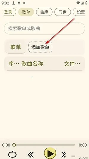 1、进入软件后点击添加歌单。