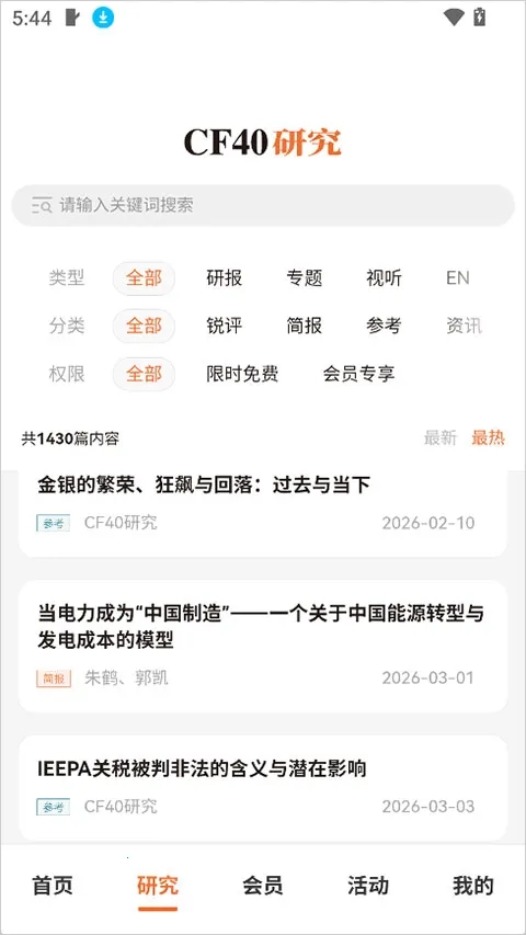 CF40金融40人论坛最新手机版是中国金融四十人论坛官方客户端,依托顶尖智库资源,以数字化传递专业价值。整合全维度内容,为会员提供高品质服务,有强大检索等功能,适合多类人群,助您洞察金融趋势辅助决策。