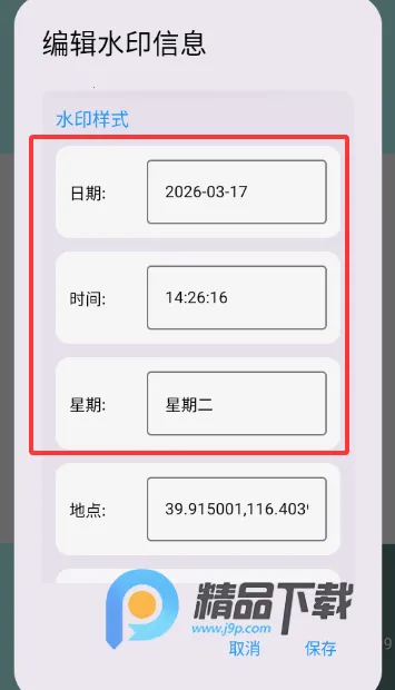 2. 特色水印模板:内置特色水印模板,支持自定义文字图标,精准记录时间地点。