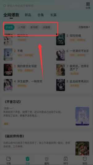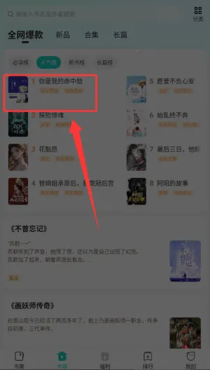 2、选择书城中的人气榜进人。