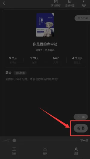 4、进入书本后点击右下角的听书功能。