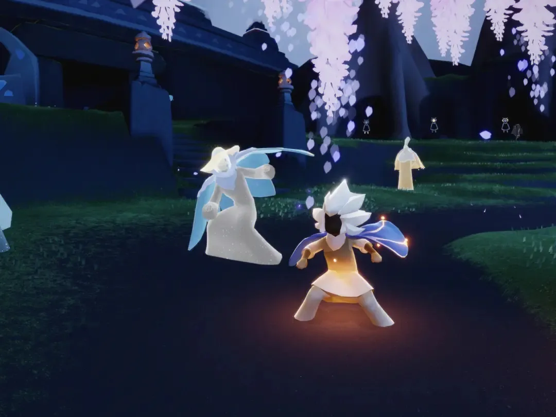 2、拯救先祖:在冒险途中,玩家会找到泛着蓝光的先祖灵魂。跟随灵魂记忆碎片,了解先祖时代历史故事,用蜡烛点亮石像,将先祖灵魂返送回天际。
