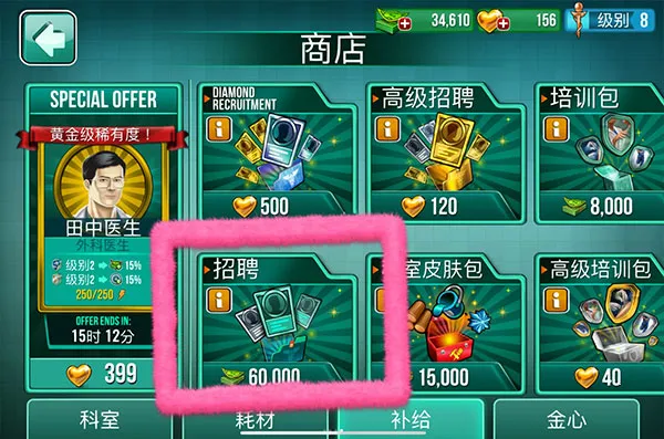医院手术时间游戏内的每个科室都有自己的功能,在科室治疗患者将产生现金用来扩建医院,但是记住,每个科室正常运作需要一名体力充沛的员工,由于游戏比较开放,很多玩法需要我们自己探索,所以很多小伙伴不知道在哪里招募员工,下面就为大家介绍一下怎么招募: