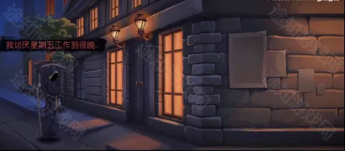 1、进入游戏后,狄蒙来到一所旅馆面前,这是他今晚最后一个工作就可以下班了