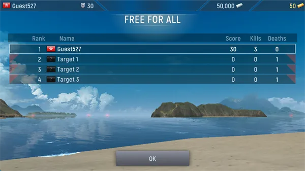 7、游戏结束后,可以看到击杀数,死亡数,以及得分。